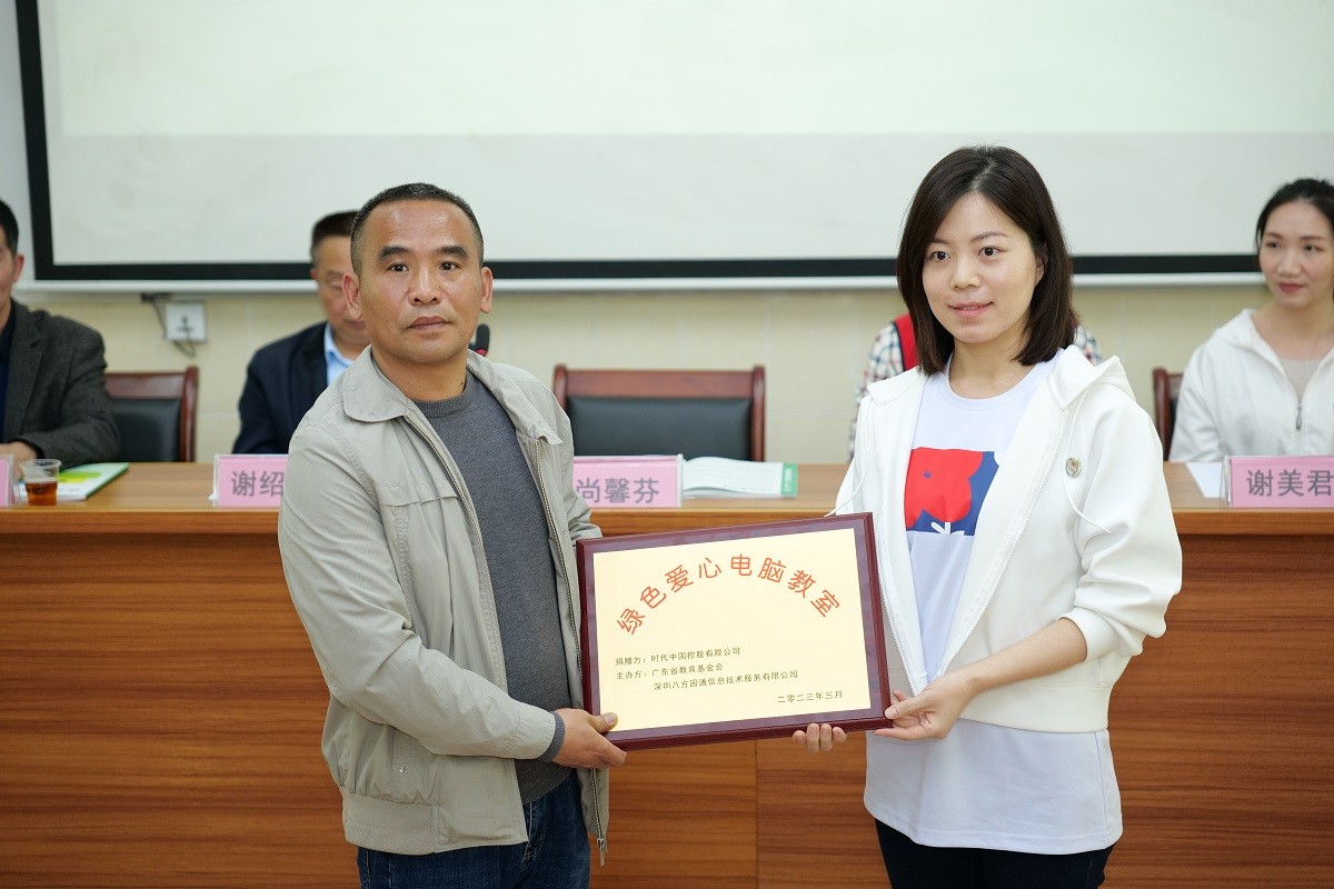 尚馨芬執行秘書長向連南瑤族自治縣寨崗鎮馬安小學、安田小學贈送“綠色愛心電腦教室”牌匾
