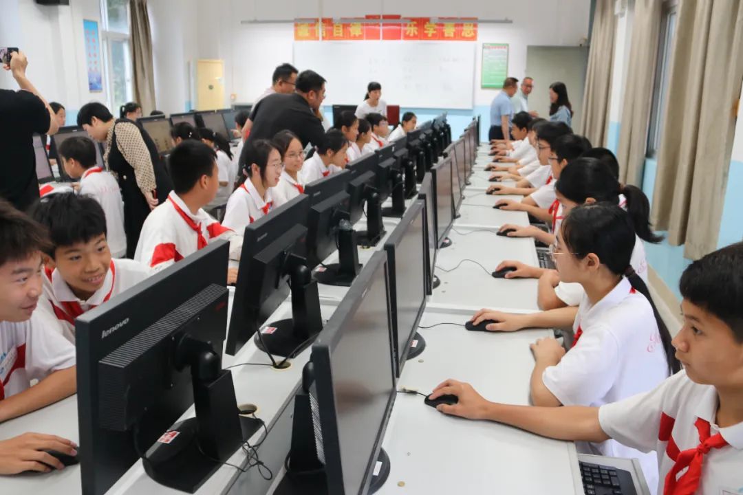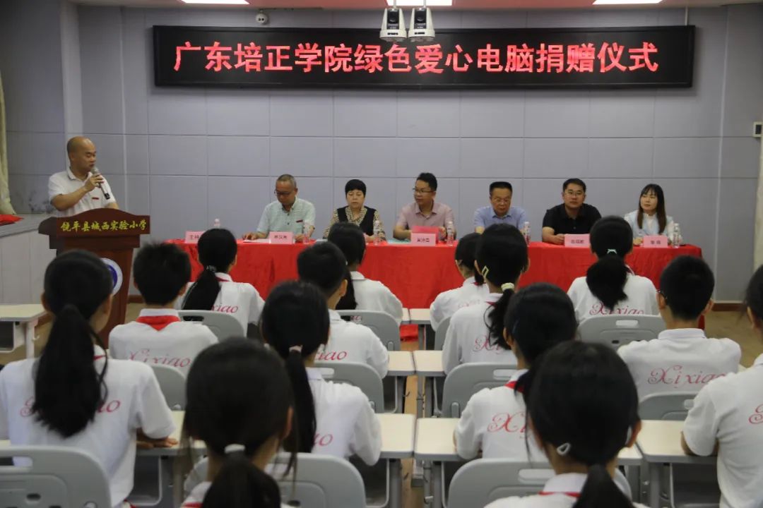 廣東培正學院基建與資產管理處處長黃濟昌、職員陳錫乾,廣東省教育基金會副秘書長謝紹熺,饒平縣教育局黨組成員林少秋,深圳八方園通信息技術服務有限公司慈善項目負責人覃娥,饒平縣城西實驗小學校長林漢周,城西實驗小學師生代表參加了捐贈儀式。 廣東培正學院“綠色愛心電腦”捐贈儀式現場