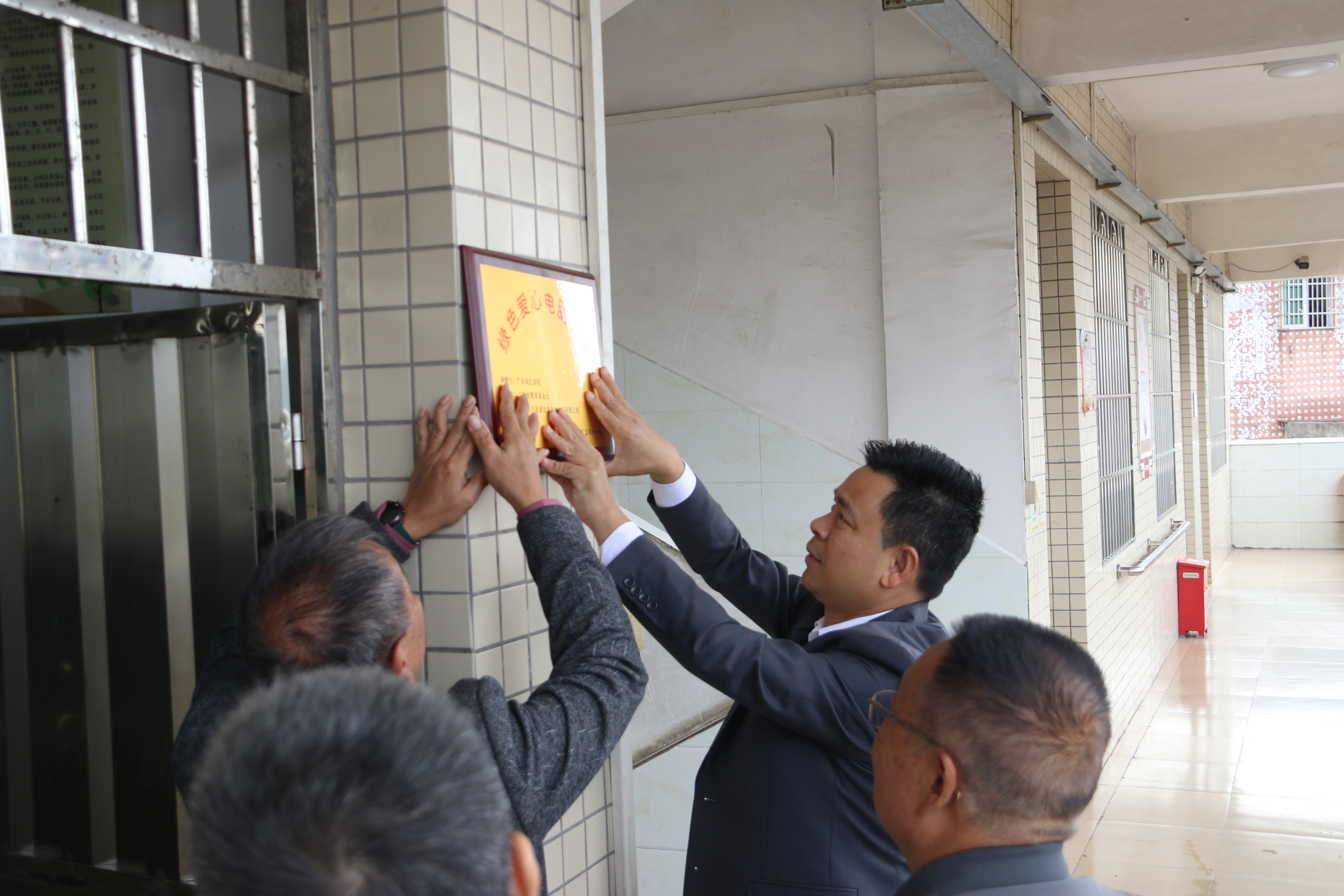 陳兵主任向龍山鎮(zhèn)中心小學贈送“綠色愛心電腦教室”牌匾